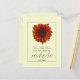 A save the date postcard featuring a background of off white. Top features image of orange sunflower. Personalise with your information in dark brown and black. Look for matching invitations and more at Jill's Paperie.