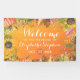 Wedding Welcome Banner Templates - Elegant Autumn Maple Leaves, Pumpkins and Sunflowers Watercolor Flowers on Orange Gradient Background.