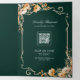 Fall Wildflower Crest Emerald QR Code Wedding Tri-Fold Invitation