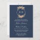 Fall Wildflower Crest QR Code Navy Blue Wedding Invitation