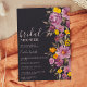 Let's celebrate the bride to be with this pretty hand painted fall winter bridal shower invitation. Featuring beautiful hand painted purple flowers watercolor, orange and yellow blooms and greenery and an elegant and modern brush script font. Perfect for autumn winter, Christmas weddings on dark off black.