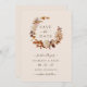 This elegant save the date card features a beautiful wreath of watercolor terracotta, taupe, and brown leaves and flowers on a beige background with brown text. This is part of the Autumn Romance Collection.