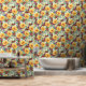 Fall Yellow Floral and Red Berries Greenery Wallpaper