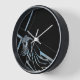 The size of the clock is dramatic and the abstract alcohol ink design is soothing and intricate at the same time. I chose the black frame that adds pop to the blue and gold design. The gold printing would be better in a slightly darker or larger font. I love it and I’m looking for just the right place in ny new apartment. I would recommend this clock for a personal gift or a present. I feel that the quality is excellent for the money! I’m a bit of a clock nut so I’m pretty particular about my purchases. The clock is larger in diameter than many if the clocks I have, so it stands out very well. I think a slightly darker printing color and a moderately larger size would best suit a professional decor or add more impact in a work place item.