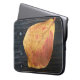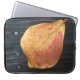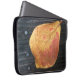 On this 15” Laptop Sleeve is an original photograph by ZoeSPEAK of a sea grape leaf, fallen from a bush onto the wooden boards of a deck, helped along its way by an afternoon shower. The grain of the wood glistens in the wetness, and the nails shine like accent marks. The yellow and orange colours of the leaf stand out against the dark background.