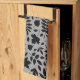 Fallen Leaves Pattern Black on Grey Tea Towel