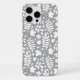 Autumnal fallen leaves in a pattern in white on a grey background.
