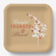 'Grateful, Thankful & Blessed' Classic And Vintage Typography, Falling Maple Leaves Autumn Tree Thanksgiving Dinner Party Design - Paper Plates.