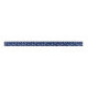 A graphic illustration of soft blue snowflakes falling gently and set against a blue background reminiscent of the winter sky is the subject of the Christmas holiday design on this ribbon.