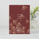 This chic and elegant save the date postcard features a burgundy background with falling faux gold foil ginkgo leaves. Perfect for fall / autumn weddings. Personalise it for your needs. You can find matching products at my store.