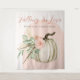Create the perfect photo moment with this Falling in Love Baby Shower Photo Backdrop Tapestry. Featuring a hand-painted watercolor white pumpkin, soft blush roses, eucalyptus greenery, pampas grass, and boho-inspired feathers, all arranged in a blush pink arch with terracotta orange "Falling In Love" text with customisable text below. Ideal for a girl baby shower, this large fall and autumn photo backdrop coordinates beautifully with the Falling in Love event suite by Porch and Gable Design, adding an elegant, rustic, boho-chic touch to your celebration. Perfect for photos, parties, and unforgettable baby shower memories.