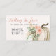 Make your baby shower extra fun with our Falling in Love with Baby diaper raffle enclosure card. The front features the collection’s signature design a soft creamy white background with a charming white watercolor pumpkin, eucalyptus sprigs, blush roses, pampas grass, and pheasant feathers and warm rust terracotta lettering of Falling in Love with Baby. Beneath the title, customisable text allows you to add your own special message, followed by Diaper Raffle in matching style. The reverse side provides a fully editable space for guests to write their names and includes customisable instructions for entering your diaper raffle. Perfectly coordinated with invitations, tableware, signage, and more from the Falling in Love with Baby collection, this card blends rustic autumn charm with elegant seasonal style.