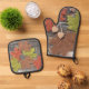 Photos of jute leaves in fall colours grace this set. One oven mitt and one pot holder make a lovely addition to fall baking and cooking at Thanksgiving. Singles also available.