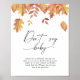 Invite your guests with this watercolor falling leaves autumn-themed baby shower invitation. Use the design tools to edit the text, change font colour and style to create a unique one of a kind invitation design. Matching items available.