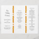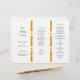 Fold this wedding program template in thirds after purchase. Two lines of fall coloured leaves divide the sections. Black template text is easy to change and customise for your ceremony. It will open like an accordion with all printing - images and text - on ONE SIDE ONLY. Choose any type of paper, recycled is shown.