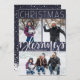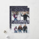 Family winter holiday greeting card featuring three photos on a dark navy blue chalkboard background with white "Christmas Blessings" modern typography script. Falling snow by night on reverse.+++++++++ Personalise it with your photos and signature!