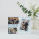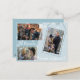 Trendy custom Happy Holidays family 3 photo collage greeting postcard in dusty blue and white with big hand-drawn snowflakes pattern and gift tag shape. +++++++++ Personalize it with your images and text on both sides!