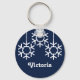 Chic and simple Falling Snowflakes Holiday Keychain featuring a trio of modern and sleek snowflakes. This Christmas keychain makes a stylish gift or stocking stuffer. Customise this falling snowflake design with your own personalised text.