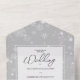 Are you planning a winter wedding and searching for the perfect invitation that captures the enchantment of falling snowflakes? This All-in-One wedding invitation, featuring delicate snowflakes gracefully descending on a pale grey background, is the ideal choice. It combines the beauty of winter with the convenience of an all-in-one design, ensuring a seamless and stylish invitation experience. The addition of the QR code allows your guests to easily access your wedding website for information including reception details and dinner choices!