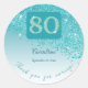 Falling Teal Blue Glitter, 80th Birthday Thanks Classic Round Sticker