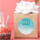 Falling Teal Blue Glitter, 80th Birthday Thanks, are glamourous Classic Round Stickers for her. These personalised Thank You Favour Stickers are elegantly drawn and designed to show appreciation towards your guests.