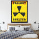Fallout Shelter vintage warning poster. Fallout nuclear poster warning. Atomic fallout retro print.