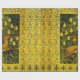 Digital elaboration from Art Deco by Bulgam Lumini. Deco Batik linen rug in blue-green, blue and brown-yellow on an ecru ground. Flowering chestnut ,a fallow deer and a rabbit among flowering wild plants ,phlox, wall pepper. On the outside a broad edge of honeysuckle with dragonflies and butterflies.