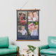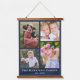 Elegant family keepsake dark blue hanging tapestry featuring a 4 photo collage and your name and year established in modern white typography.