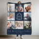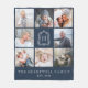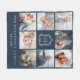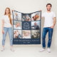 Family 8 Photo Collage Monogram Crest Navy Blue Fleece Blanket