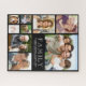 A custom 9 photo collage puzzle for your family featuring your favourite pictures, and "Family" and your names in white typography against a black background. The colours of the background and text can be changed by editing in the design tool.