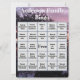 Create a bingo card for a Family Bingo game. Personalise with your own family names on one side and with family photos on the other side. To play the game call out the names of grandparents and great grandparents or other family members or as a variation hold up photos and have the players mark the name of the person or mark their photo. Mix up the names and photos on each card to make a fun game that helps everyone learn about their ancestors. Suggested names are indicated for each square, but you can put in any name when you personalise and create a variety of cards for the game. A pink and purple sunset photo with tree silhouettes is featured on both sides of the card as a background. The background photo can be changed to one of your own if desired.