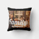 Personalise this chic pillow with two cherished photos and a touch of boho charm. The word "family" is elegantly displayed in a modern white font, and there's a space to add your family name.