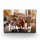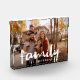 Modern trendy family photo brush script photo block. Perfect gift for relatives or friends. Design featuring of single horizontal photography and white ''family'' script in brushed font. Personalise with family name.