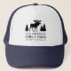 A stylish baseball & trucker hat with your personalised family name and cabin, cottage or other desired text along with an established date and location. This custom design features rustic style typography with artwork of a moose and pine trees silhouette in black. To see more designs like this, feel free to visit my store here at "Zazzle.com/Rustic_Charm". Thanks.