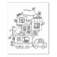 Family Camping Trailer Colouring Page Rubber Stamp