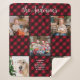 Family Christmas 5 Photo Collage Custom Red Plaid Sherpa Blanket