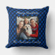 Family Christmas Personalised Photo Blue Plaid Cushion