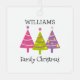 A cute and simple Christmas design with pink, purple, yellow, and green Christmas trees. Add your family name to make it unique. By clicking on the customise button, you can also change the text "Family Christmas". Change the sample photo on the back of the ornament with your own.