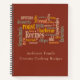 Keep all your favourite recipes together in this Family Country Cooking Recipes Sayings Notebook. A beautiful burnt umber cover features words about cooking: aromas, desserts, candies, broiling, casseroles, favourites, grandma's baking, marinades, etc. Add your name and give your album a title to make it personal to you, or use this as a gift to newlyweds or housewarming events. Designed to complement other products in my store with the same design. Design ©Coastal South Designs.