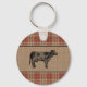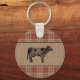 Family Farmhouse Rustic Cow Red Plaid Burlap Round Key Ring