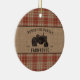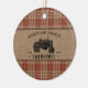 A beautiful, rustic themed ceramic ornament, featuring your family name and "farmhouse", ranch, homestead or other desired text and an established date. This unique, custom design features hand drawn artwork of a vintage farm tractor on a burlap style print backing and surrounded with beautiful country red and khaki plaid. A charming addition to your Christmas tree and holiday decor. To see more designs like this, feel free to visit my store here at "Zazzle.com/Rustic_Charm". Thanks.