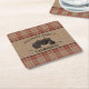 Family Farmhouse Rustic Tractor Red Plaid Burlap Square Paper Coaster