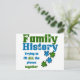 'Family History, trying to fit all the pieces together' - and the text is written in puzzle pieces with a few pieces missing in the words and tumbling down the design. Clever design for anyone working with the family tree and roots of their ancestors.