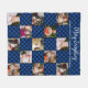 Family Holiday Blue Patchwork Plaid Photo Collage Fleece Blanket