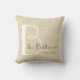 Family Keepsake Monogram Throw Pillow; Brown Letters on Tan Parchment, Customise with Family Name, Initial and Year Established
