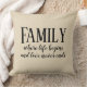 This is an attractive throw pillow for your home. It states "Family where life begins and love never ends".