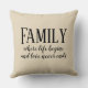 Family life begins love never ends Throw Pillow