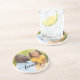 Modern and stylish custom sandstone coaster features a favourite photo with a minimal "family" typography overlay design that includes elegant flourish and heart details. The black text colour can be modified.