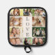 A white photo collage pot holder that your family or grandparents will treasure and enjoy for years. Personalise with ten family photos. "LOVE" is written vertically down the middle in elegant typography.