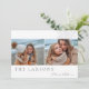 Send holiday greetings to friends and family in chic style with our elegant photo cards. Designed to accommodate two of your favorite photos arranged side by side, this chic minimalist card features your family name in stately charcoal gray lettering, with "Peace on Earth" in ornate classic script alongside the year. A pale snowflake silhouette at the corner completes this modern, minimal design.